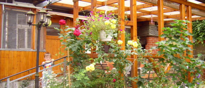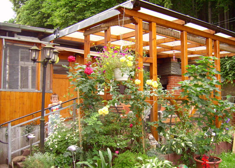 Veranda und Freisitzmöglichkeiten im direkt am Haus gelegenen Garten, können jederzeit von unseren Gästen genutzt werden. Kostenfreier PKW-Stellplatz ist auch vorhanden.